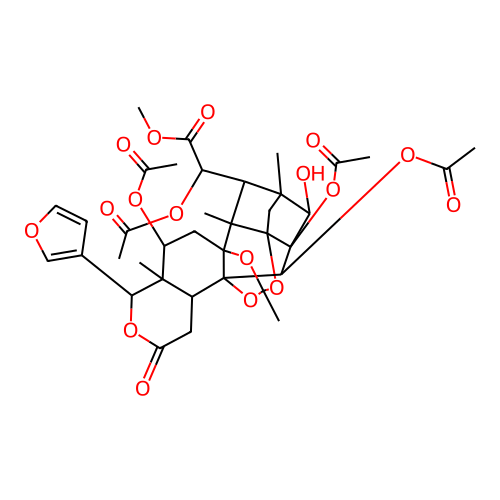 InChI=1S/C37H44O17/c1-16(38)47-22-13-34-32(7)25(24(27(43)45-9)48-17(2)39)30(5)15-35(32)37(28(30)44,51-19(4)41)29(49-18(3)40)36(34,54-33(8,52-34)53-35)21-12-23(42)50-26(31(21,22)6)20-10-11-46-14-20/h10-11,14,21-22,24-26,28-29,44H,12-13,15H2,1-9H3/t21-,22+,24+,25+,26+,28+,29+,30?,31+,32+,33-,34?,35-,36-,37+/m1/s1 |
