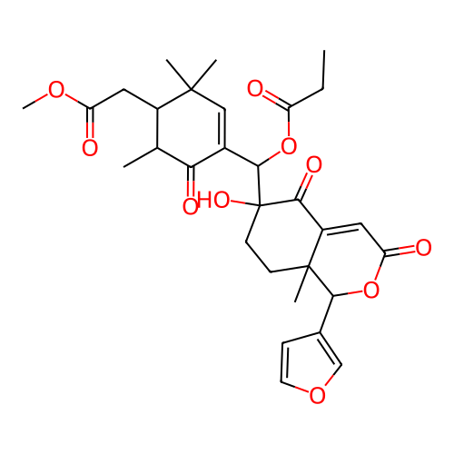 CCC(=O)OC(C1=CC(C)(C)C(CC(=O)OC)C(C)C1=O)C1(O)CCC2(C)C(=CC(=O)OC2c2ccoc2)C1=O |