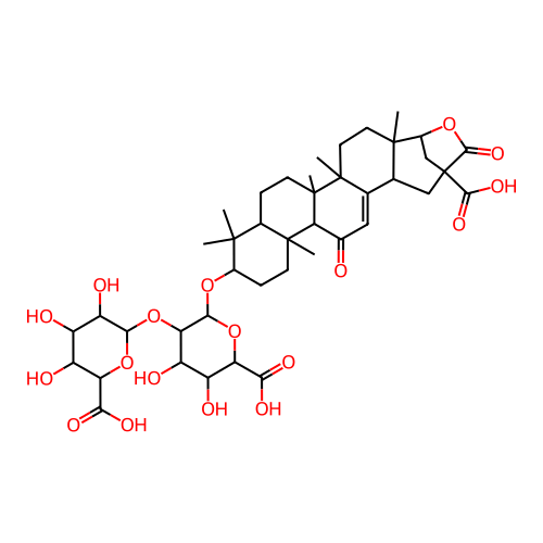 InChI=1S/C42H58O18/c1-37(2)19-7-10-41(6)30(18(43)13-16-17-14-42(35(53)54)15-21(57-36(42)55)38(17,3)11-12-40(16,41)5)39(19,4)9-8-20(37)56-34-29(25(47)24(46)28(59-34)32(51)52)60-33-26(48)22(44)23(45)27(58-33)31(49)50/h13,17,19-30,33-34,44-48H,7-12,14-15H2,1-6H3,(H,49,50)(H,51,52)(H,53,54)/t17-,19-,20-,21+,22-,23-,24-,25-,26+,27-,28-,29+,30+,33-,34+,38+,39-,40+,41+,42+/m0/s1 |