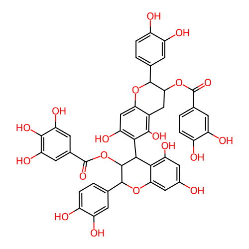 O=C(OC1Cc2c(cc(O)c(C3c4c(O)cc(O)cc4OC(c4ccc(O)c(O)c4)C3OC(=O)c3cc(O)c(O)c(O)c3)c2O)OC1c1ccc(O)c(O)c1)c1ccc(O)c(O)c1 |