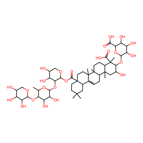 28-(O-beta-D-Xylopyranosyl-(1->4)-O-6-deoxy-alpha-L-mannopyranosyl-(1->2)-alpha-L-arabinopyranosyl) (2beta,3beta,4alpha)-3-(beta-D-glucopyranuronosyloxy)-2-hydroxyolean-12-ene-23,28-dioate |