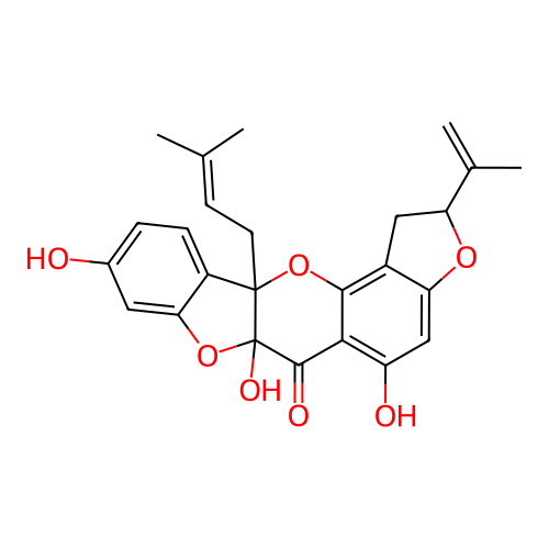 InChI=1S/C25H24O7/c1-12(2)7-8-24-16-6-5-14(26)9-20(16)31-25(24,29)23(28)21-17(27)11-19-15(22(21)32-24)10-18(30-19)13(3)4/h5-7,9,11,18,26-27,29H,3,8,10H2,1-2,4H3/t18-,24+,25+/m0/s1 |