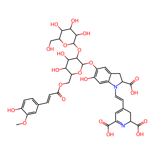 InChI=1S/C40H44N2O21/c1-58-25-10-16(2-4-23(25)44)3-5-29(46)59-15-28-31(48)33(50)35(63-39-34(51)32(49)30(47)27(14-43)61-39)40(62-28)60-26-12-18-11-22(38(56)57)42(21(18)13-24(26)45)7-6-17-8-19(36(52)53)41-20(9-17)37(54)55/h2-8,10,12-13,20,22,27-28,30-35,39-40,43-45,47-51H,9,11,14-15H2,1H3,(H,52,53)(H,54,55)(H,56,57)/t20-,22-,27+,28+,30+,31+,32-,33-,34+,35+,39-,40+/m0/s1 |