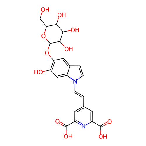 O=C(O)c1cc(C=Cn2ccc3cc(OC4OC(CO)C(O)C(O)C4O)c(O)cc32)cc(C(=O)O)n1 |