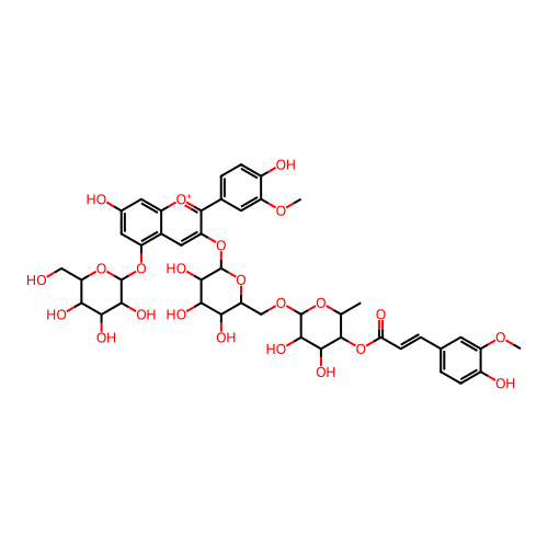 InChI=1S/C44H50O23/c1-17-40(67-31(49)9-5-18-4-7-22(47)26(10-18)58-2)36(54)39(57)42(61-17)60-16-30-33(51)35(53)38(56)44(66-30)64-28-14-21-24(62-41(28)19-6-8-23(48)27(11-19)59-3)12-20(46)13-25(21)63-43-37(55)34(52)32(50)29(15-45)65-43/h4-14,17,29-30,32-40,42-45,50-57H,15-16H2,1-3H3,(H2-,46,47,48,49)/p+1/t17-,29+,30+,32+,33+,34-,35-,36-,37+,38+,39+,40-,42+,43+,44+/m0/s1 |