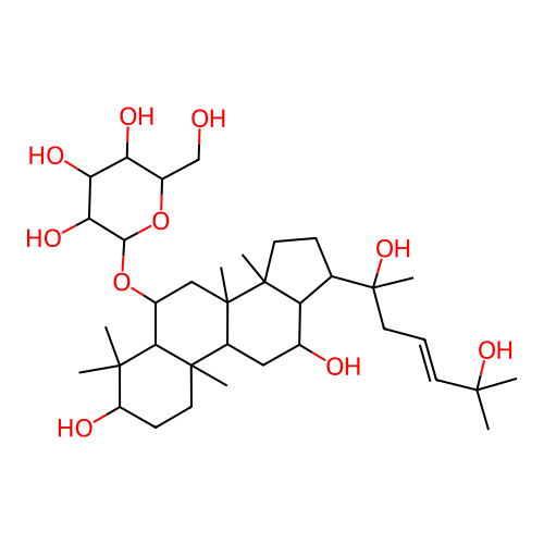InChI=1S/C36H62O10/c1-31(2,43)12-9-13-36(8,44)19-10-15-34(6)25(19)20(38)16-23-33(5)14-11-24(39)32(3,4)29(33)21(17-35(23,34)7)45-30-28(42)27(41)26(40)22(18-37)46-30/h9,12,19-30,37-44H,10-11,13-18H2,1-8H3/b12-9+/t19-,20+,21-,22+,23+,24-,25-,26+,27-,28+,29-,30+,33+,34+,35+,36-/m0/s1 |