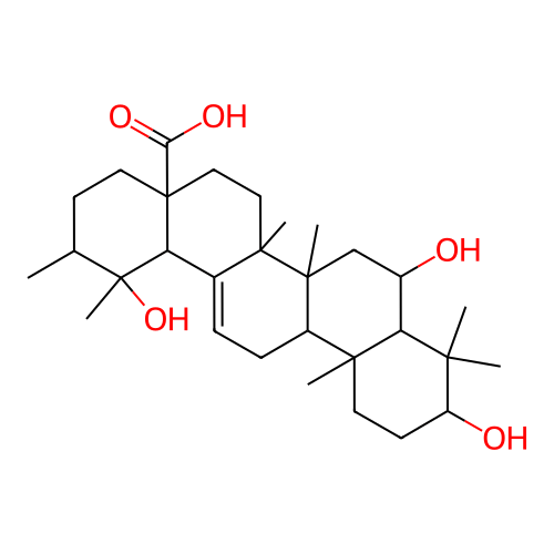 InChI=1S/C30H48O5/c1-17-10-13-30(24(33)34)15-14-27(5)18(22(30)29(17,7)35)8-9-20-26(4)12-11-21(32)25(2,3)23(26)19(31)16-28(20,27)6/h8,17,19-23,31-32,35H,9-16H2,1-7H3,(H,33,34)/t17-,19+,20-,21+,22-,23+,26-,27-,28-,29-,30+/m1/s1 |