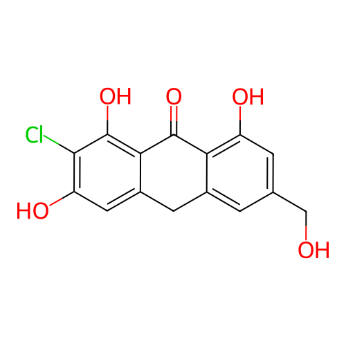 O=C1c2c(O)cc(CO)cc2Cc2cc(O)c(Cl)c(O)c21 |