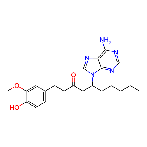 CCCCCC(CC(=O)CCc1ccc(O)c(OC)c1)n1cnc2c(N)ncnc21 |
