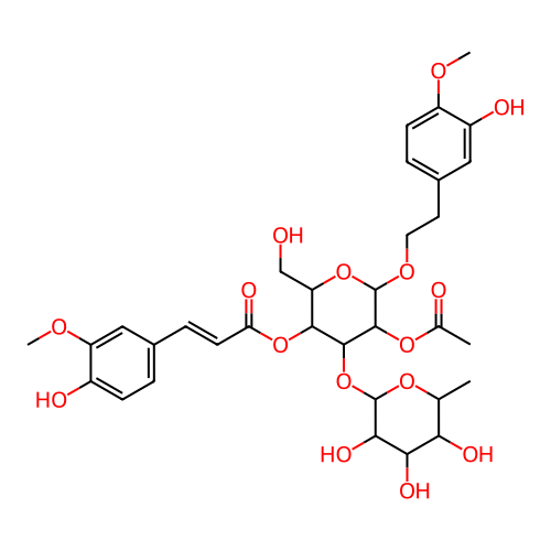 InChI=1S/C33H42O16/c1-16-26(39)27(40)28(41)32(45-16)49-30-29(48-25(38)10-7-18-5-8-20(36)23(14-18)43-4)24(15-34)47-33(31(30)46-17(2)35)44-12-11-19-6-9-22(42-3)21(37)13-19/h5-10,13-14,16,24,26-34,36-37,39-41H,11-12,15H2,1-4H3/b10-7+/t16-,24+,26-,27+,28+,29+,30-,31+,32-,33+/m0/s1 |