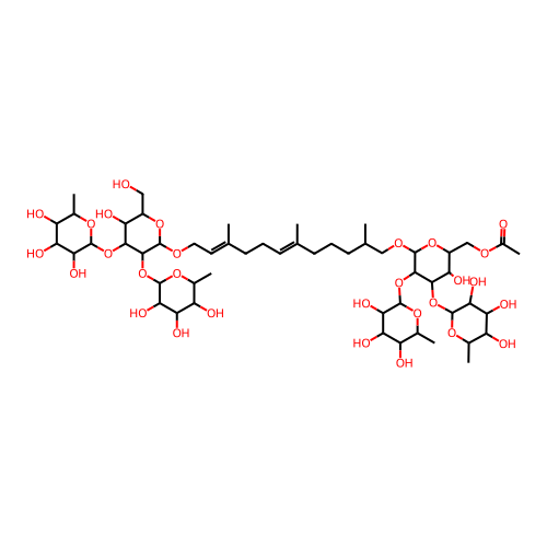 InChI=1S/C53H90O29/c1-20(11-9-13-21(2)15-16-70-52-46(81-50-42(68)38(64)32(58)25(6)75-50)44(34(60)28(17-54)77-52)79-48-40(66)36(62)30(56)23(4)73-48)12-10-14-22(3)18-72-53-47(82-51-43(69)39(65)33(59)26(7)76-51)45(35(61)29(78-53)19-71-27(8)55)80-49-41(67)37(63)31(57)24(5)74-49/h11,15,22-26,28-54,56-69H,9-10,12-14,16-19H2,1-8H3/b20-11+,21-15+/t22-,23-,24-,25-,26-,28+,29+,30-,31-,32-,33-,34+,35+,36+,37+,38+,39+,40+,41+,42+,43+,44-,45-,46+,47+,48-,49-,50-,51-,52+,53+/m0/s1 |