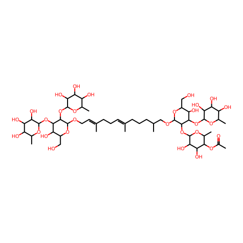 InChI=1S/C53H90O29/c1-20(11-9-13-21(2)15-16-70-52-46(81-50-41(68)37(64)32(59)25(6)74-50)44(33(60)28(17-54)77-52)79-48-39(66)35(62)30(57)23(4)72-48)12-10-14-22(3)19-71-53-47(82-51-42(69)38(65)43(26(7)75-51)76-27(8)56)45(34(61)29(18-55)78-53)80-49-40(67)36(63)31(58)24(5)73-49/h11,15,22-26,28-55,57-69H,9-10,12-14,16-19H2,1-8H3/b20-11+,21-15+/t22-,23-,24-,25-,26-,28+,29+,30-,31-,32-,33+,34+,35+,36+,37+,38-,39+,40+,41+,42+,43-,44-,45-,46+,47+,48-,49-,50-,51-,52+,53+/m0/s1 |