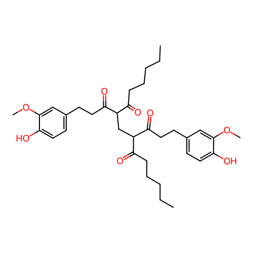 CCCCCC(=O)C(CC(C(=O)CCCCC)C(=O)CCc1ccc(O)c(OC)c1)C(=O)CCc1ccc(O)c(OC)c1 |