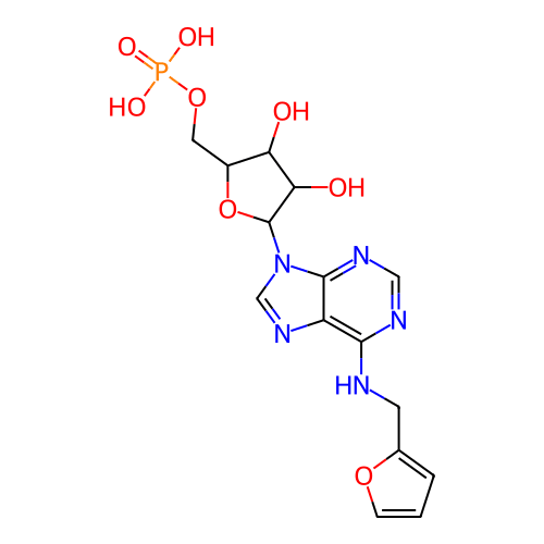 O=P(O)(O)OCC1OC(n2cnc3c(NCc4ccco4)ncnc32)C(O)C1O |