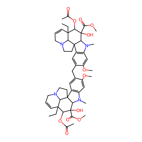 InChI=1S/C51H64N4O12/c1-11-46-15-13-19-54-21-17-48(38(46)54)32-24-30(36(62-7)26-34(32)52(5)40(48)50(60,44(58)64-9)42(46)66-28(3)56)23-31-25-33-35(27-37(31)63-8)53(6)41-49(33)18-22-55-20-14-16-47(12-2,39(49)55)43(67-29(4)57)51(41,61)45(59)65-10/h13-16,24-27,38-43,60-61H,11-12,17-23H2,1-10H3 |