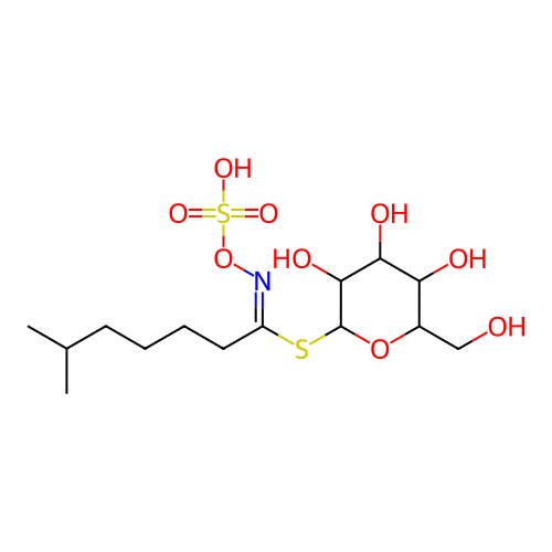 InChI=1S/C14H27NO9S2/c1-8(2)5-3-4-6-10(15-24-26(20,21)22)25-14-13(19)12(18)11(17)9(7-16)23-14/h8-9,11-14,16-19H,3-7H2,1-2H3,(H,20,21,22)/t9-,11-,12+,13-,14+/m1/s1 |