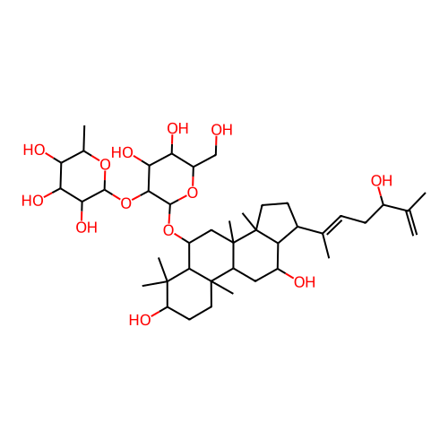 InChI=1S/C42H70O13/c1-19(2)23(44)11-10-20(3)22-12-15-41(8)29(22)24(45)16-27-40(7)14-13-28(46)39(5,6)36(40)25(17-42(27,41)9)53-38-35(33(50)31(48)26(18-43)54-38)55-37-34(51)32(49)30(47)21(4)52-37/h10,21-38,43-51H,1,11-18H2,2-9H3/b20-10+/t21-,22+,23?,24+,25-,26+,27+,28-,29-,30-,31+,32+,33-,34+,35+,36-,37-,38+,40+,41+,42+/m0/s1 |