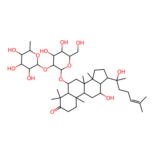 InChI=1S/C42H70O13/c1-20(2)11-10-14-42(9,51)22-12-16-40(7)28(22)23(44)17-26-39(6)15-13-27(45)38(4,5)35(39)24(18-41(26,40)8)53-37-34(32(49)30(47)25(19-43)54-37)55-36-33(50)31(48)29(46)21(3)52-36/h11,21-26,28-37,43-44,46-51H,10,12-19H2,1-9H3/t21-,22-,23+,24-,25+,26+,28-,29-,30+,31+,32-,33+,34+,35-,36-,37+,39+,40+,41+,42-/m0/s1 |