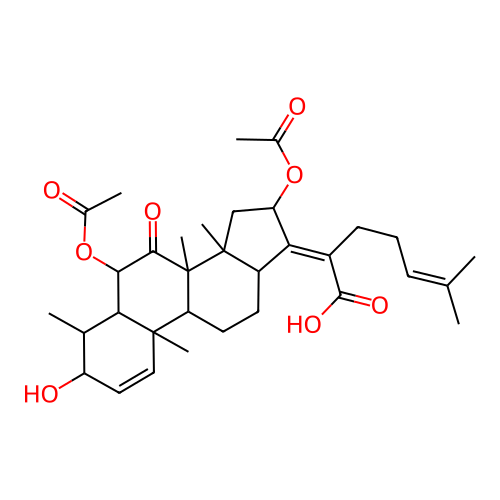 InChI=1S/C33H46O8/c1-17(2)10-9-11-21(30(38)39)26-22-12-13-25-31(6)15-14-23(36)18(3)27(31)28(41-20(5)35)29(37)33(25,8)32(22,7)16-24(26)40-19(4)34/h10,14-15,18,22-25,27-28,36H,9,11-13,16H2,1-8H3,(H,38,39)/b26-21-/t18-,22+,23?,24+,25+,27-,28+,31-,32+,33-/m1/s1 |