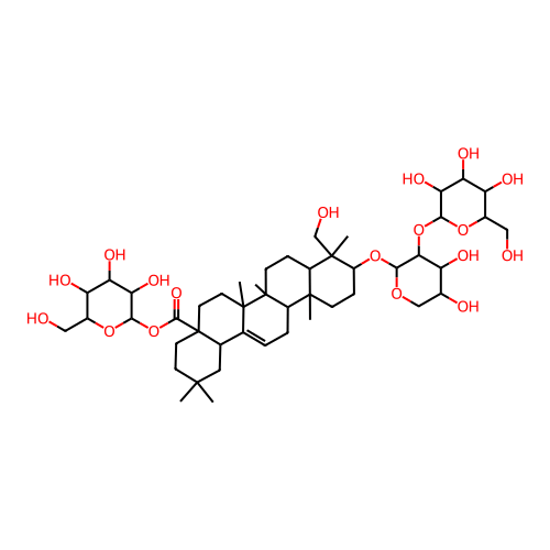 InChI=1S/C47H76O18/c1-42(2)13-15-47(41(59)65-39-36(58)34(56)32(54)26(19-49)62-39)16-14-45(5)22(23(47)17-42)7-8-28-43(3)11-10-29(44(4,21-50)27(43)9-12-46(28,45)6)63-40-37(30(52)24(51)20-60-40)64-38-35(57)33(55)31(53)25(18-48)61-38/h7,23-40,48-58H,8-21H2,1-6H3/t23-,24-,25+,26+,27+,28+,29-,30-,31+,32+,33-,34-,35+,36+,37+,38-,39-,40-,43-,44-,45+,46+,47-/m0/s1 |
