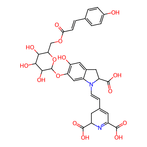O=C(C=Cc1ccc(O)cc1)OCC1OC(Oc2cc3c(cc2O)CC(C(=O)O)N3C=CC2=CC(C(=O)O)=NC(C(=O)O)C2)C(O)C(O)C1O |