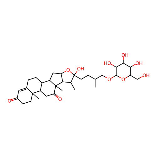 InChI=1S/C33H50O10/c1-16(15-41-30-29(39)28(38)27(37)24(14-34)42-30)7-10-33(40)17(2)26-23(43-33)12-22-20-6-5-18-11-19(35)8-9-31(18,3)21(20)13-25(36)32(22,26)4/h11,16-17,20-24,26-30,34,37-40H,5-10,12-15H2,1-4H3/t16-,17+,20-,21+,22+,23+,24-,26+,27-,28+,29-,30-,31+,32-,33-/m1/s1 |