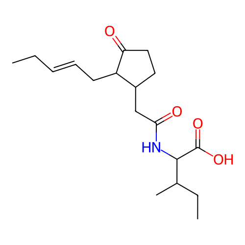 InChI=1S/C18H29NO4/c1-4-6-7-8-14-13(9-10-15(14)20)11-16(21)19-17(18(22)23)12(3)5-2/h6-7,12-14,17H,4-5,8-11H2,1-3H3,(H,19,21)(H,22,23)/b7-6-/t12-,13+,14-,17-/m0/s1 |