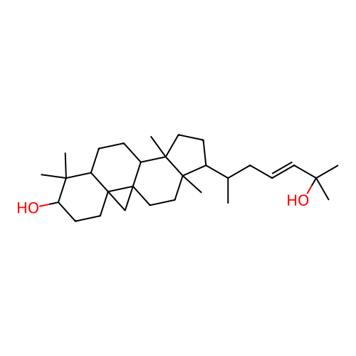 InChI=1S/C30H50O2/c1-20(9-8-14-25(2,3)32)21-12-15-28(7)23-11-10-22-26(4,5)24(31)13-16-29(22)19-30(23,29)18-17-27(21,28)6/h8,14,20-24,31-32H,9-13,15-19H2,1-7H3/b14-8+/t20-,21-,22+,23+,24+,27-,28+,29-,30+/m1/s1 |