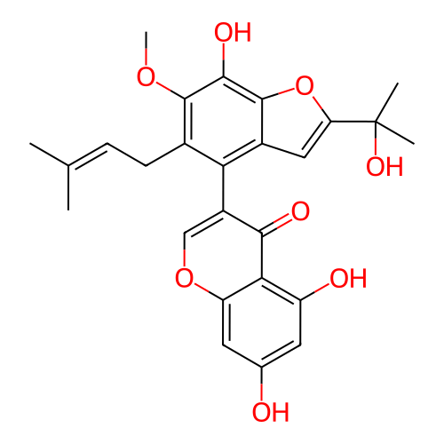 COc1c(CC=C(C)C)c(-c2coc3cc(O)cc(O)c3c2=O)c2cc(C(C)(C)O)oc2c1O |