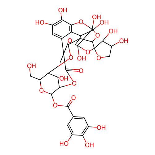 InChI=1S/C32H30O23/c33-4-13-18-17(40)20(25(49-13)52-23(42)7-1-9(34)15(38)10(35)2-7)50-24(43)8-3-11(36)16(39)19-14(8)21-28(27(44)51-18)6-29(45)32(47,53-19)31(21,46)54-26(28)30(55-29)22(41)12(37)5-48-30/h1-3,12-13,17-18,20-22,25-26,33-41,45-47H,4-6H2 |