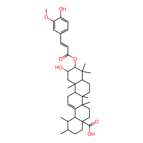 InChI=1S/C40H56O7/c1-23-15-18-40(35(44)45)20-19-38(6)26(33(40)24(23)2)11-13-31-37(5)22-28(42)34(36(3,4)30(37)16-17-39(31,38)7)47-32(43)14-10-25-9-12-27(41)29(21-25)46-8/h9-12,14,21,23-24,28,30-31,33-34,41-42H,13,15-20,22H2,1-8H3,(H,44,45)/b14-10-/t23-,24+,28-,30+,31-,33+,34+,37+,38-,39-,40+/m1/s1 |