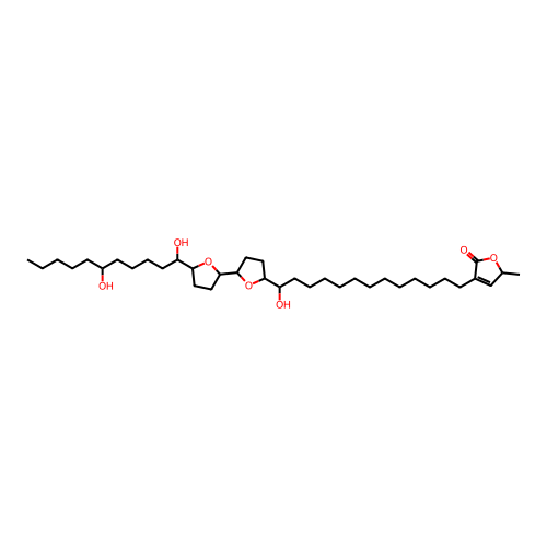 InChI=1S/C37H66O7/c1-3-4-13-19-30(38)20-16-17-22-32(40)34-24-26-36(44-34)35-25-23-33(43-35)31(39)21-15-12-10-8-6-5-7-9-11-14-18-29-27-28(2)42-37(29)41/h27-28,30-36,38-40H,3-26H2,1-2H3/t28-,30-,31+,32-,33+,34+,35+,36+/m0/s1 |