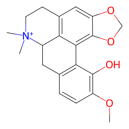 COc1ccc2c(c1O)-c1c3c(cc4c1C(C2)[N+](C)(C)CC4)OCO3 |