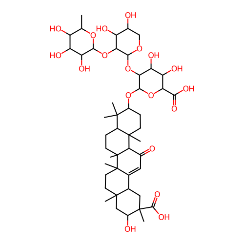 InChI=1S/C47H72O19/c1-19-27(51)29(53)32(56)38(62-19)65-34-28(52)23(49)18-61-39(34)66-35-31(55)30(54)33(37(57)58)64-40(35)63-26-10-11-44(5)24(42(26,2)3)9-12-47(8)36(44)22(48)15-20-21-16-45(6,41(59)60)25(50)17-43(21,4)13-14-46(20,47)7/h15,19,21,23-36,38-40,49-56H,9-14,16-18H2,1-8H3,(H,57,58)(H,59,60)/t19-,21-,23+,24-,25+,26-,27-,28-,29+,30-,31-,32+,33-,34+,35+,36+,38-,39-,40+,43-,44-,45+,46+,47+/m0/s1 |