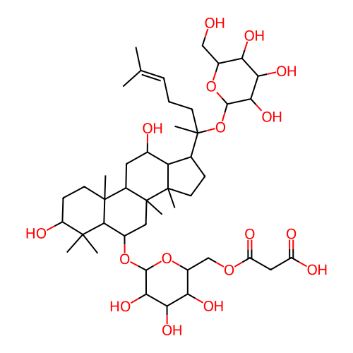 InChI=1S/C45H74O17/c1-21(2)10-9-13-45(8,62-40-37(57)34(54)32(52)25(19-46)60-40)22-11-15-43(6)31(22)23(47)16-27-42(5)14-12-28(48)41(3,4)38(42)24(18-44(27,43)7)59-39-36(56)35(55)33(53)26(61-39)20-58-30(51)17-29(49)50/h10,22-28,31-40,46-48,52-57H,9,11-20H2,1-8H3,(H,49,50)/t22-,23+,24-,25+,26+,27+,28-,31-,32+,33+,34-,35-,36+,37+,38-,39+,40-,42+,43+,44+,45-/m0/s1 |