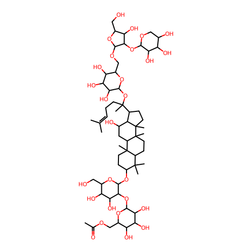 CC(=O)OCC1OC(OC2C(OC3CCC4(C)C(CCC5(C)C4CC(O)C4C(C(C)(CCC=C(C)C)OC6OC(COC7OC(CO)C(O)C7OC7OCC(O)C(O)C7O)C(O)C(O)C6O)CCC45C)C3(C)C)OC(CO)C(O)C2O)C(O)C(O)C1O |