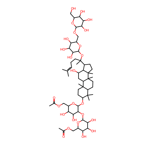 CC(=O)OCC1OC(OC2C(OC3CCC4(C)C(CCC5(C)C4CC(O)C4C(C(C)(CCC=C(C)C)OC6OC(COC7OC(CO)C(O)C(O)C7O)C(O)C(O)C6O)CCC45C)C3(C)C)OC(COC(C)=O)C(O)C2O)C(O)C(O)C1O |