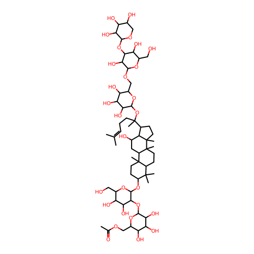 CC(=O)OCC1OC(OC2C(OC3CCC4(C)C(CCC5(C)C4CC(O)C4C(C(C)(CCC=C(C)C)OC6OC(COC7OC(CO)C(O)C(OC8OCC(O)C(O)C8O)C7O)C(O)C(O)C6O)CCC45C)C3(C)C)OC(CO)C(O)C2O)C(O)C(O)C1O |