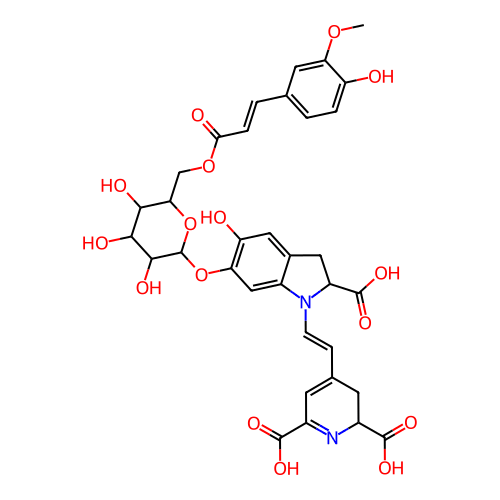 SMILES COc1cc(C=CC(=O)OCC2OC(Oc3cc4c(cc3O)CC(C(=O)O)N4C=CC3=CC(C(=O)O)=NC(C(=O)O)C3)C(O)C(O)C2O)ccc1O
