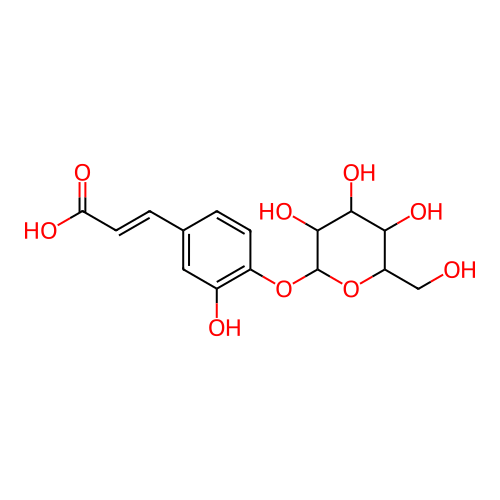 InChI=1S/C15H18O9/c16-6-10-12(20)13(21)14(22)15(24-10)23-9-3-1-7(5-8(9)17)2-4-11(18)19/h1-5,10,12-17,20-22H,6H2,(H,18,19)/t10-,12-,13+,14-,15-/m1/s1;InChI=1S/C15H18O9/c16-6-10-12(20)13(21)14(22)15(24-10)23-9-3-1-7(5-8(9)17)2-4-11(18)19/h1-5,10,12-17,20-22H,6H2,(H,18,19)/b4-2+;InChI=1S/C15H18O9/c16-6-10-12(20)13(21)14(22)15(24-10)23-9-3-1-7(5-8(9)17)2-4-11(18)19/h1-5,10,12-17,20-22H,6H2,(H,18,19)/b4-2- |