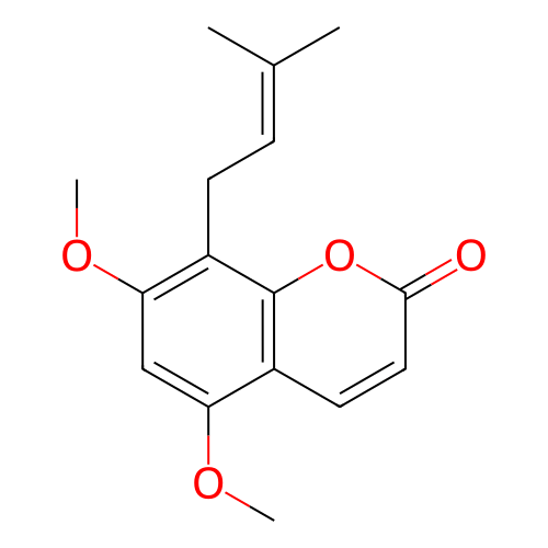 InChI=1S/C16H18O4/c1-10(2)5-6-11-13(18-3)9-14(19-4)12-7-8-15(17)20-16(11)12/h5,7-9H,6H2,1-4H3 |