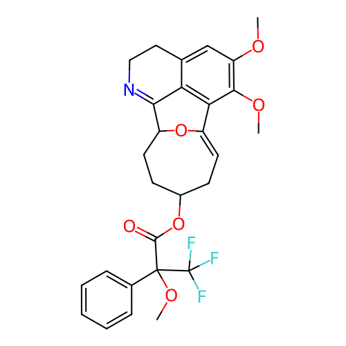 COc1cc2c3c(c1OC)C1=CCC(OC(=O)C(OC)(c4ccccc4)C(F)(F)F)CCC(O1)C3=NCC2 |