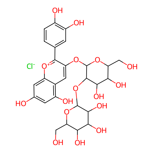 InChI=1S/C27H30O16.ClH/c28-7-17-19(34)21(36)23(38)26(41-17)43-25-22(37)20(35)18(8-29)42-27(25)40-16-6-11-13(32)4-10(30)5-15(11)39-24(16)9-1-2-12(31)14(33)3-9;/h1-6,17-23,25-29,34-38H,7-8H2,(H3-,30,31,32,33);1H/t17-,18-,19-,20-,21+,22+,23-,25-,26+,27-;/m1./s1 |