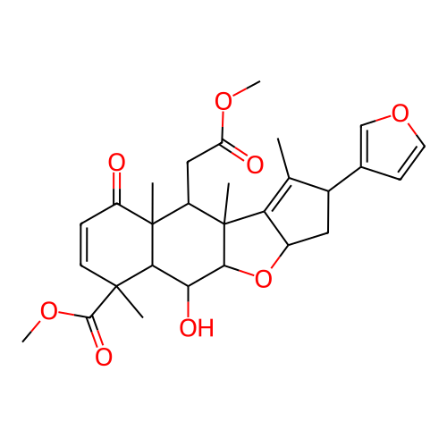 InChI=1S/C28H34O8/c1-14-16(15-8-10-35-13-15)11-17-21(14)28(4)18(12-20(30)33-5)27(3)19(29)7-9-26(2,25(32)34-6)23(27)22(31)24(28)36-17/h7-10,13,16-18,22-24,31H,11-12H2,1-6H3;InChI=1S/C28H34O8/c1-14-16(15-8-10-35-13-15)11-17-21(14)28(4)18(12-20(30)33-5)27(3)19(29)7-9-26(2,25(32)34-6)23(27)22(31)24(28)36-17/h7-10,13,16-18,22-24,31H,11-12H2,1-6H3/t16-,17-,18+,22-,23+,24-,26-,27+,28-/m1/s1;InChI=1S/C28H34O8/c1-14-16(15-8-10-35-13-15)11-17-21(14)28(4)18(12-20(30)33-5)27(3)19(29)7-9-26(2,25(32)34-6)23(27)22(31)24(28)36-17/h7-10,13,16-18,22-24,31H,11-12H2,1-6H3/t16-,17-,18-,22-,23+,24-,26-,27+,28-/m1/s1 |