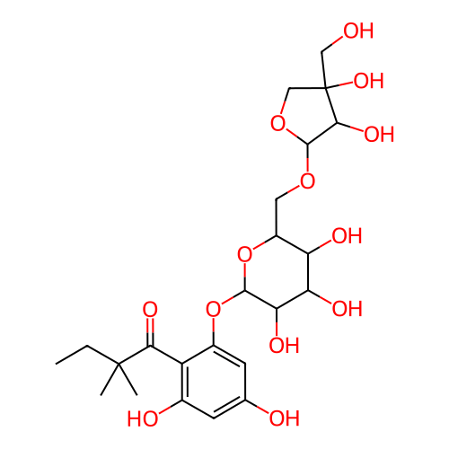 InChI=1S/C23H34O13/c1-4-22(2,3)18(30)14-11(26)5-10(25)6-12(14)35-20-17(29)16(28)15(27)13(36-20)7-33-21-19(31)23(32,8-24)9-34-21/h5-6,13,15-17,19-21,24-29,31-32H,4,7-9H2,1-3H3/t13-,15-,16+,17-,19+,20-,21-,23-/m1/s1 |