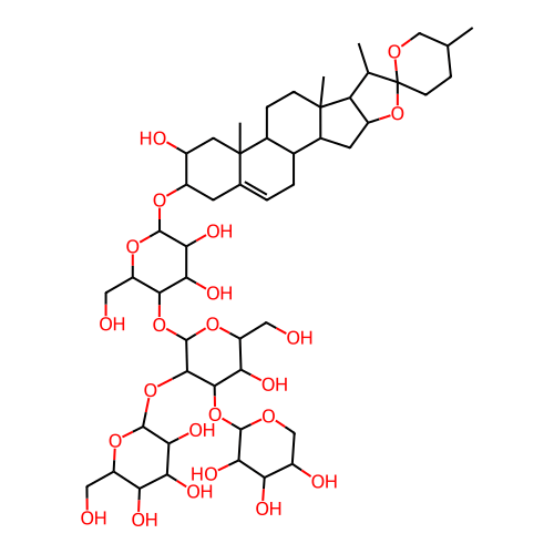 InChI=1S/C50H80O23/c1-19-7-10-50(65-17-19)20(2)32-28(73-50)12-24-22-6-5-21-11-27(25(54)13-49(21,4)23(22)8-9-48(24,32)3)66-45-40(63)37(60)41(31(16-53)69-45)70-47-43(72-46-39(62)36(59)34(57)29(14-51)67-46)42(35(58)30(15-52)68-47)71-44-38(61)33(56)26(55)18-64-44/h5,19-20,22-47,51-63H,6-18H2,1-4H3/t19-,20-,22+,23-,24-,25+,26+,27+,28-,29+,30+,31+,32-,33-,34+,35+,36-,37+,38+,39+,40+,41-,42-,43+,44-,45+,46-,47-,48-,49-,50+/m0/s1 |