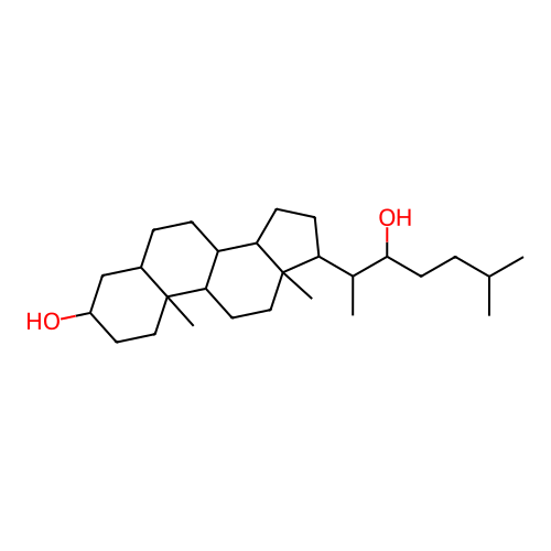 InChI=1S/C27H48O2/c1-17(2)6-11-25(29)18(3)22-9-10-23-21-8-7-19-16-20(28)12-14-26(19,4)24(21)13-15-27(22,23)5/h17-25,28-29H,6-16H2,1-5H3/t18-,19-,20-,21-,22+,23-,24-,25-,26-,27+/m0/s1 |