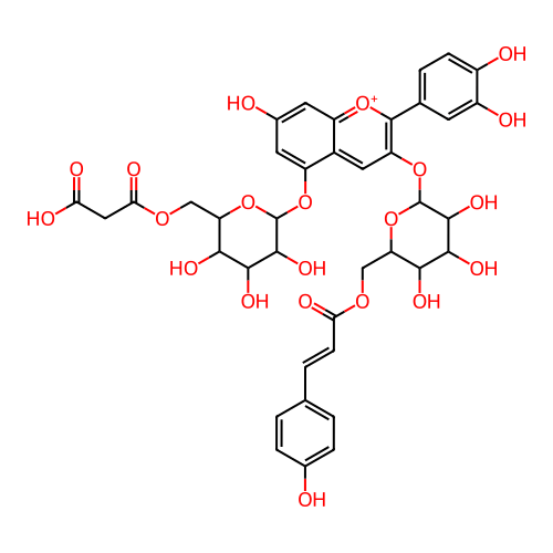 5-[[6-O-(2-Carboxyacetyl)-beta-D-glucopyranosyl]oxy]-2-(3,4-dihydroxyphenyl)-7-hydroxy-3-[[6-O-[(2Z)-3-(4-hydroxyphenyl)-1-oxo-2-propen-1-yl]-beta-D-glucopyranosyl]oxy]-1-benzopyrylium |