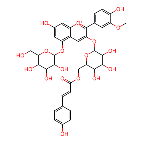 InChI=1S/C37H38O18/c1-49-24-10-17(5-8-21(24)41)35-25(13-20-22(51-35)11-19(40)12-23(20)52-36-33(47)31(45)29(43)26(14-38)54-36)53-37-34(48)32(46)30(44)27(55-37)15-50-28(42)9-4-16-2-6-18(39)7-3-16/h2-13,26-27,29-34,36-38,43-48H,14-15H2,1H3,(H2-,39,40,41,42)/p+1/t26-,27-,29-,30-,31+,32+,33-,34-,36-,37-/m1/s1 |