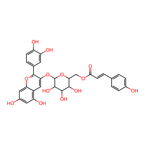 O=C(C=Cc1ccc(O)cc1)OCC1OC(Oc2cc3c(O)cc(O)cc3[o+]c2-c2ccc(O)c(O)c2)C(O)C(O)C1O |